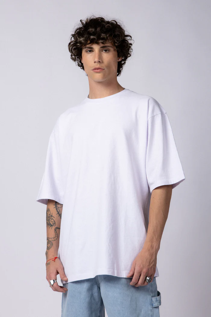 Remera lisa de algodon, escote redondo,. Corte over-size.